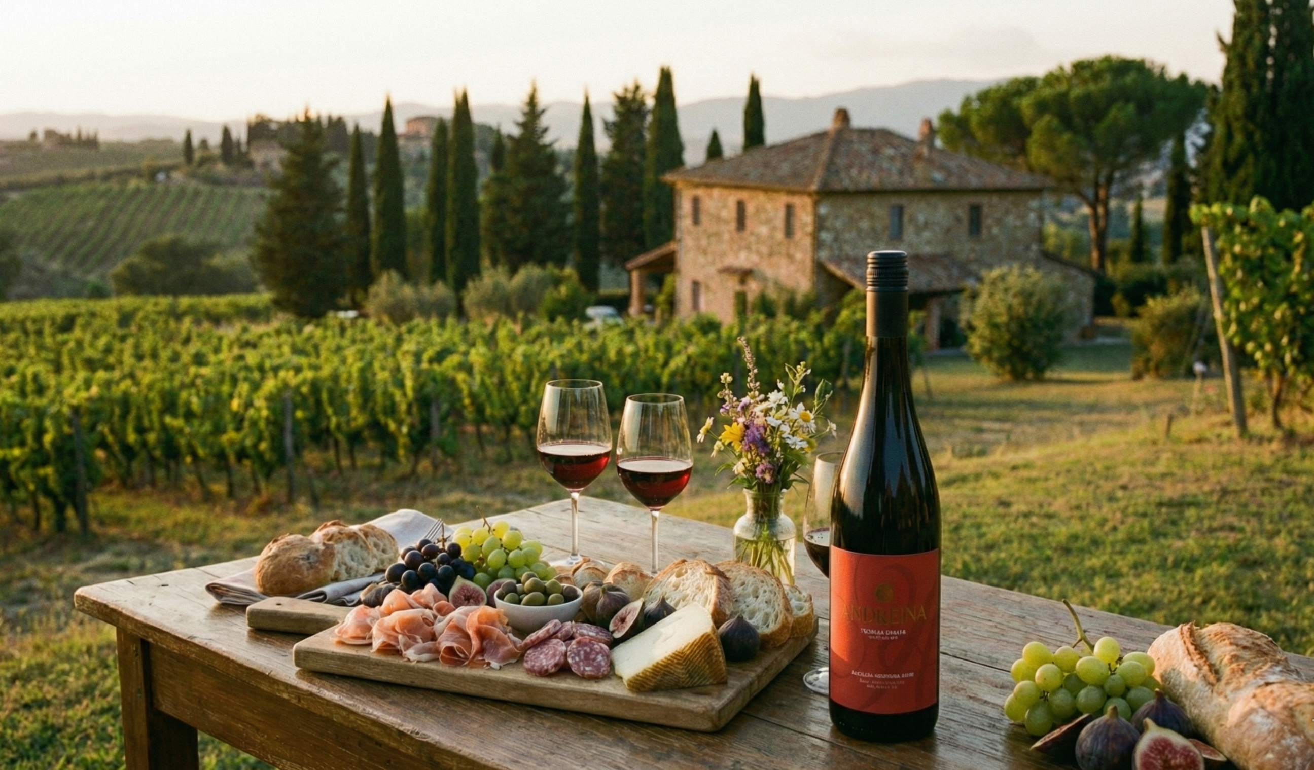 Andreina was designed for food. The structured tannins, balanced acidity, and savory character make it a natural companion to meals.